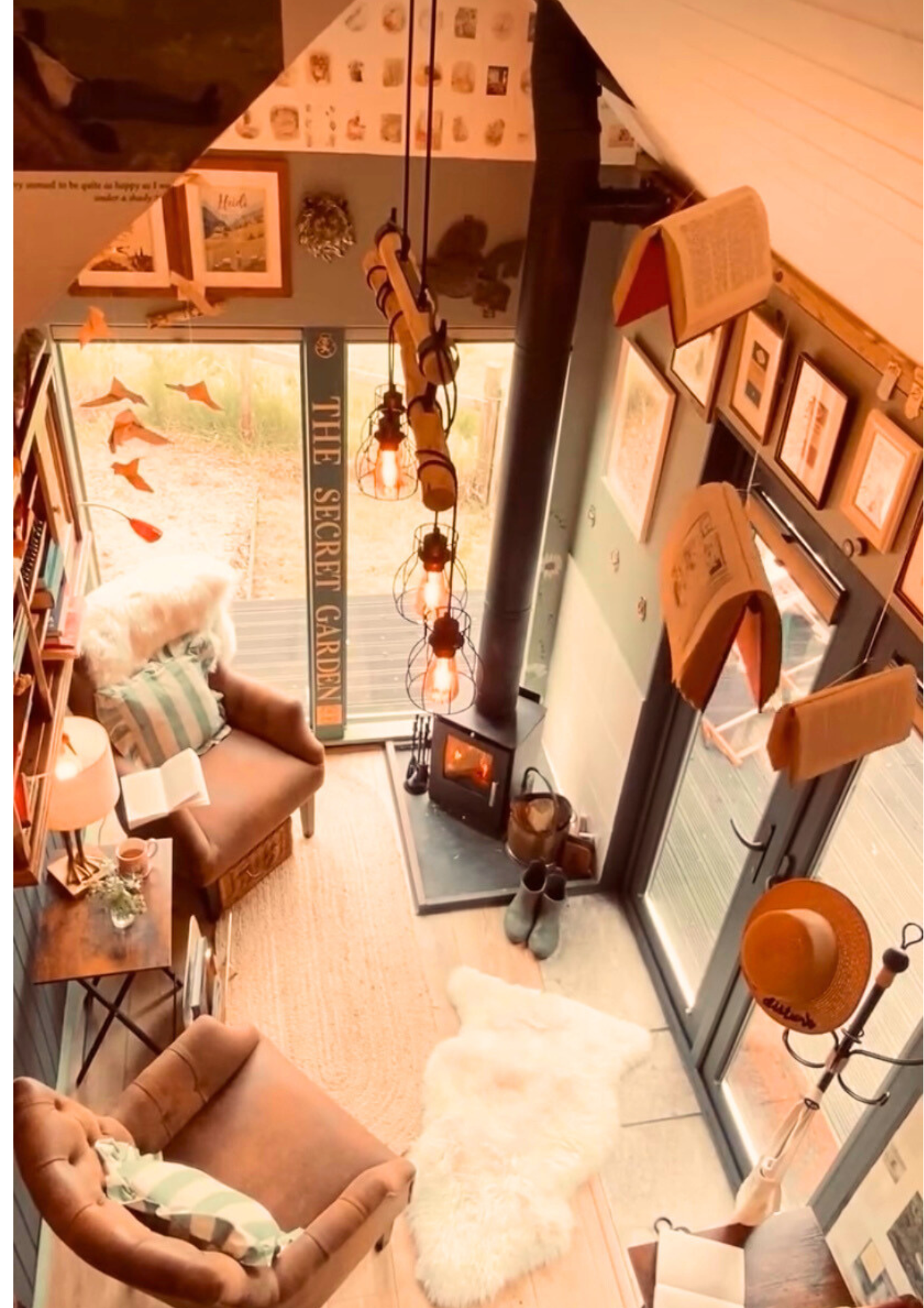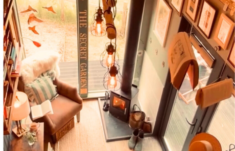 The Book Nook is inspired by a love of books and literature. It was hand crafted and made as sustainably as possible, re-using, upcycling and renovating all from scratch and by re-purposing a trailer for the base of the build. The design is therefore quirky, creative and inventive. With a log burner, garden and even a Narnian wardrobe (who needs anything more!) it’s a very magical place to curl up in.